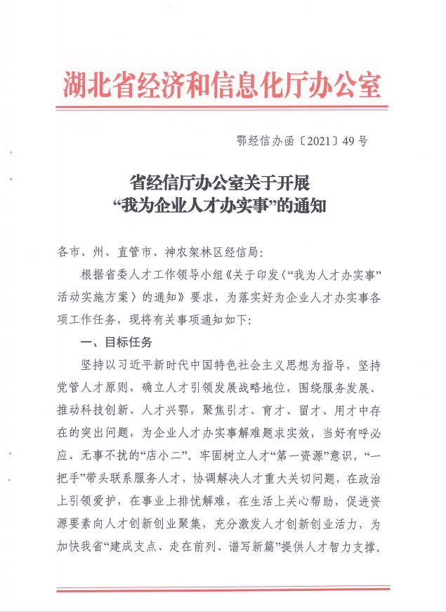 省经信厅办公室关于开展“我为人才办实事”的通知