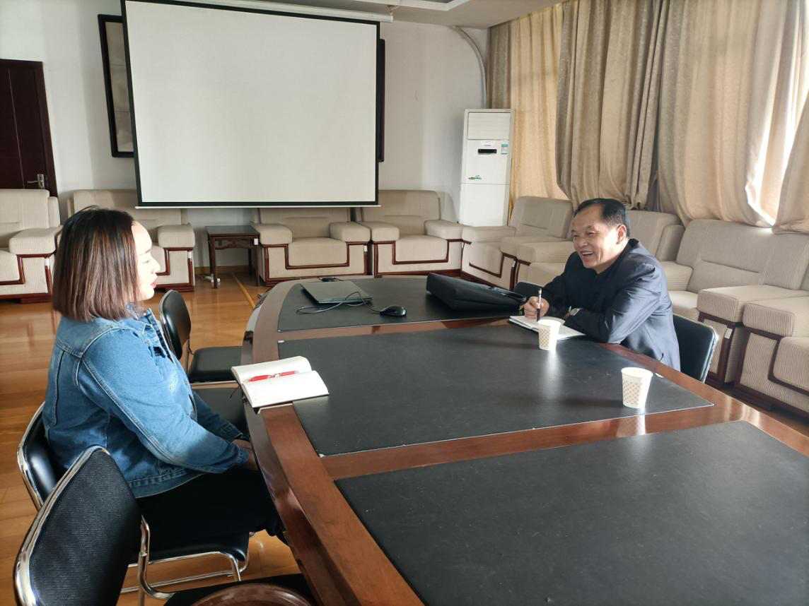 图为中心“双千”工作专班工作人员与武汉武汉爱民药业公司总经理办公室负责人交流座谈。