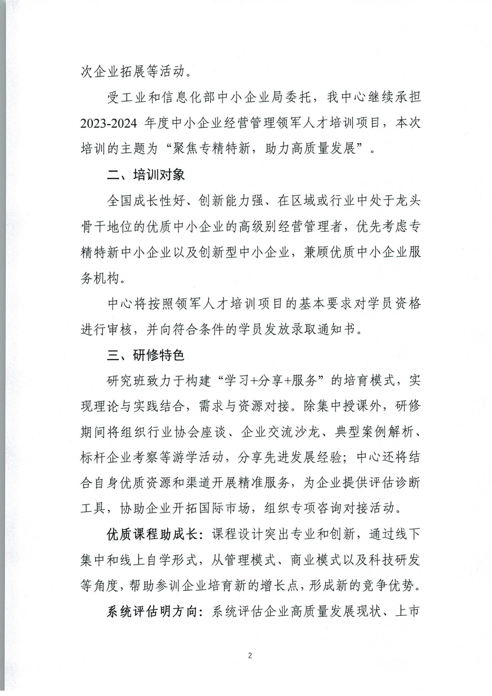 关于举办2023-2024年度中小企业经营管理领军人才高质量发展研修班的通知