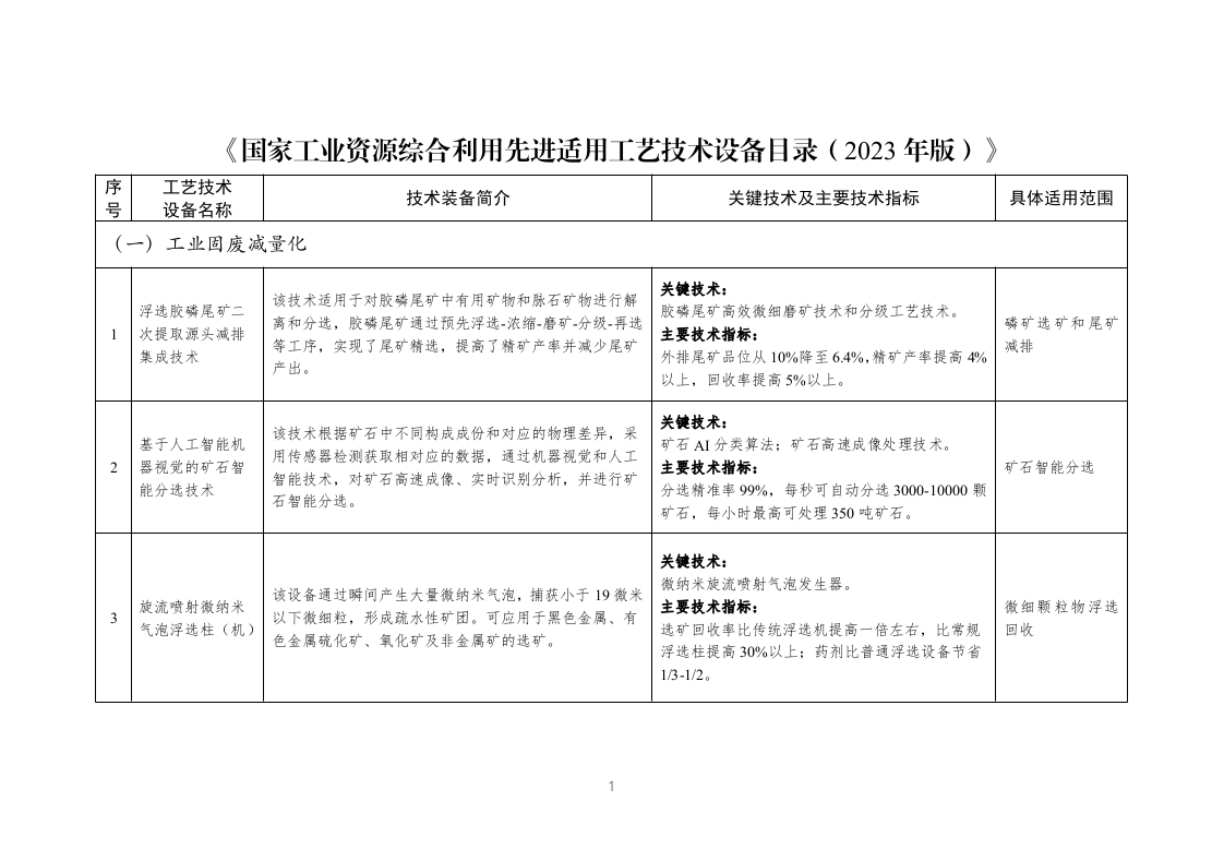 《国家工业资源综合利用先进适用工艺技术设备目录(2023年版)》