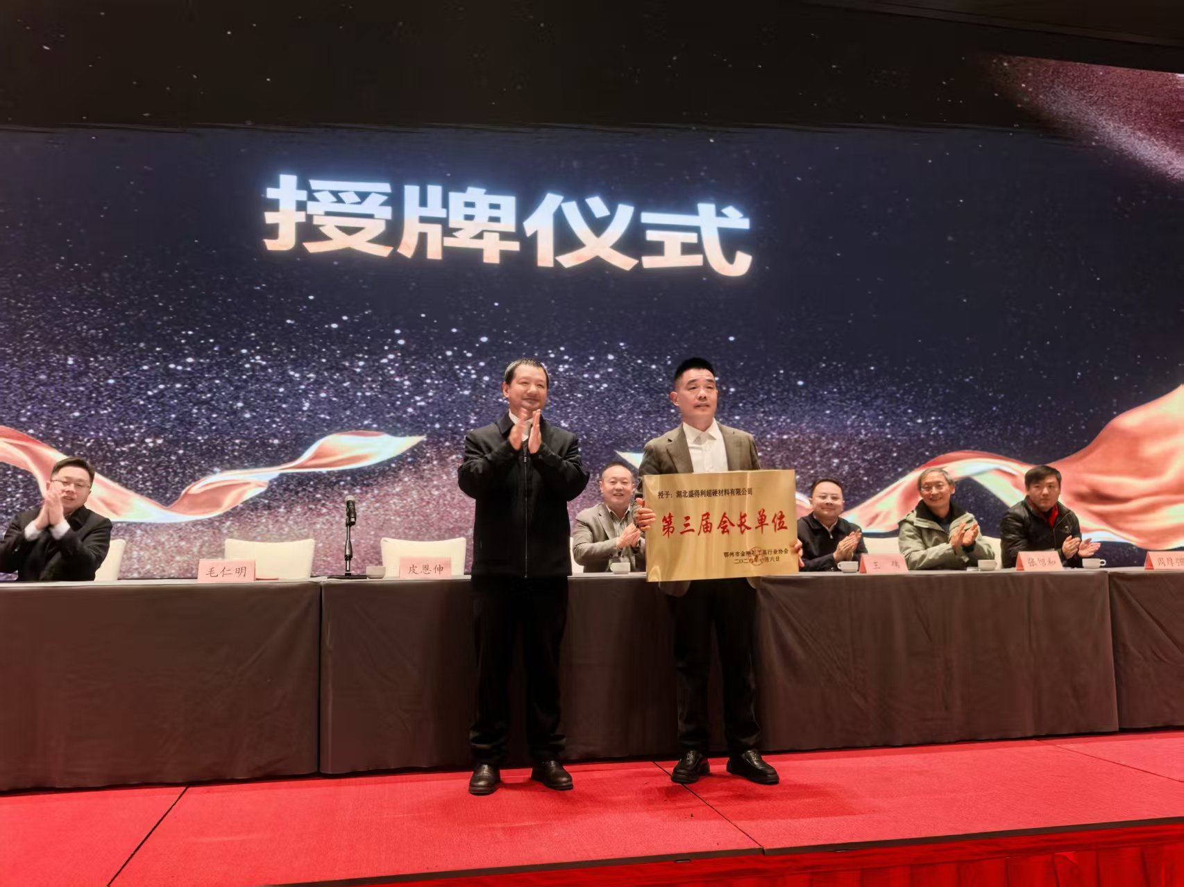 骐骥驰骋,马到成功。1月6日,鄂州市金刚石工具行业协会选举大会暨“聚力 创新 汇智”恳谈大会在临空经济区皇冠假日酒店隆重举行。大会选举毛仁明为第三届理事会会长,湖北盛得利超硬材料有限公司为第三届会长单位,市经信局、临空经济区、市劳动就业服务中心等部门相关负责人到会祝贺,与百余名企业家齐聚一堂,会商和见证金刚石工具产业新年迈出新征程。