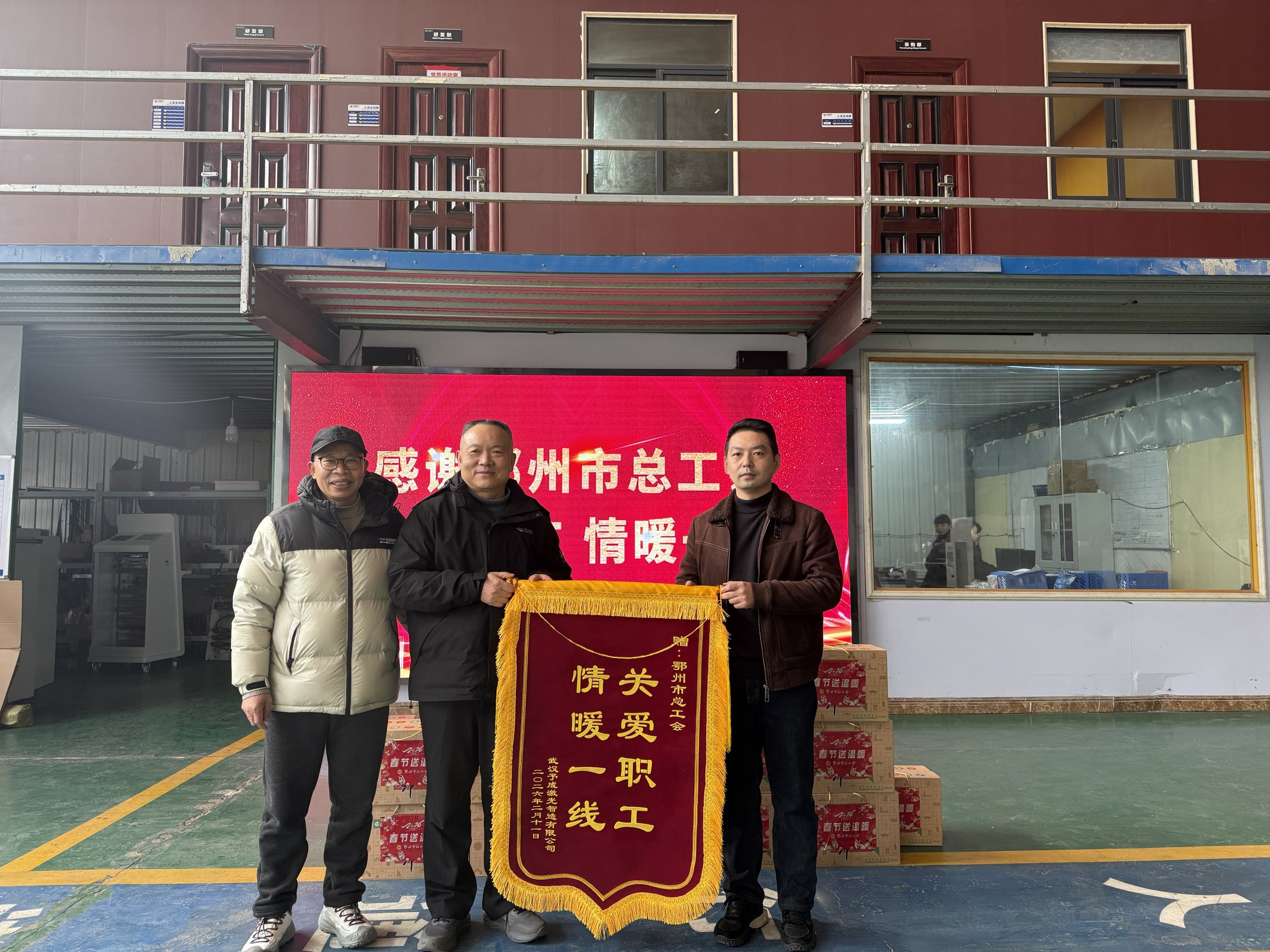 2月11日上午,市总工会“双千”专班在市总工会党组成员、副主席肖奎园的带领下,前往武汉欣洋光精密冲压件有限公司、武汉予成激光智造有限公司开展走访服务活动,详细了解企业生产运行情况,鼓励企业增强发展信心,奋力实现首季“开门红”,同时为企业一线职工开展“春节送温暖”活动,赠送物资100箱。武汉予成激光智造有限公司向鄂州市总工会赠送锦旗,对“双千”企业的贴心服务与大力支持表达感谢。